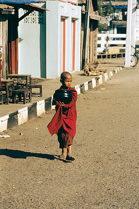 Room 22 - Burma Fotos von Land und Leuten Auf meinen zahlreichen ausgedehnten Reisen durch dieses wunderschöne und faszinierende Land, habe ich auch fotografiert und nicht nur skizziert. Hier in diesem Raum nun eine winzig kleine Auswahl meiner Lieblingsbilder. (Aktuell muß erwähnt werden, dass sich in Burma gerade relativ viel tut.- Oktober 2011 - Es sieht ein klein wenig nach Öffnung aus. In den letzten 20 Jahren war das sporadisch der Fall und jedesmal wurden die Hoffnungen und Erwartungen aufs Schlimmste enttäuscht. Ich hoffe, dass es diesmal etwas besser läuft. Burma [Myanmar] soll ja 2014 den ASEAN-Vorsitz antreten und braucht dringend ein paar Bonuspunkte auf der Menschenrechtsskala. Vielleicht ist dieser äussere Druck ein Anlass, die ersten Kurskorrekturen seit 1962 vorzunehmen.) Ein (sehr) junger Mönch auf seinem morgendlichen Bettelgang in Sittwe. Eine staubige und wenig charmante Stadt in Burma. Für Reisende nur der Anschluß in Richtung Mrauk-U…
