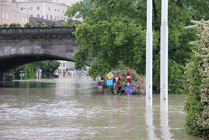 The flood in Linz June 2013 Die zweite Jahrhundertflut in diesem Jahrhundert hat in Linz keine so katastrophalen Schäden angerichtet wie in anderen Orten und Städten. Optisch war das alles sehr eindrucksvoll und gewaltig. Da bin ich dann - wie so viele andere auch - selbstverständlich mit der Kamera ausgerückt und habe eine ganze Menge Fotos vom Hochwasser gemacht. Am 4. Juni 2013. Die Straße unter der Nibelungenbrücke