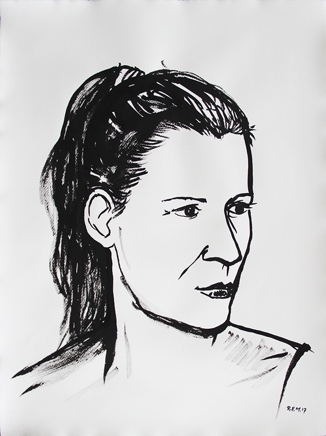 2017 - aktuelle Arbeiten In diesem Raum finden sich nun aktuelle Bilder. Die ersten 6 Stück sind alle mit Acryl auf Leinwand gemalt. Gemeinsam haben sie den Entstehungszeitraum: „Ist das alles?“ malte ich im Dezember 2016, die anderen 5 im Januar 2017. Die weiteren Bilder sind ziemlich frisch und in unterschiedlichen Techniken. Muse, 56 x 75 cm, Tusche auf Büttenpapier